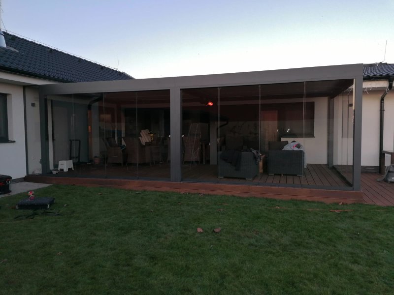 REALIZACE PERGOLY ALUX BIOclimatic + INFRAZÁŘIČ HELIOSA + BEZRÁMOVÉ ZASKLENÍ MOVE